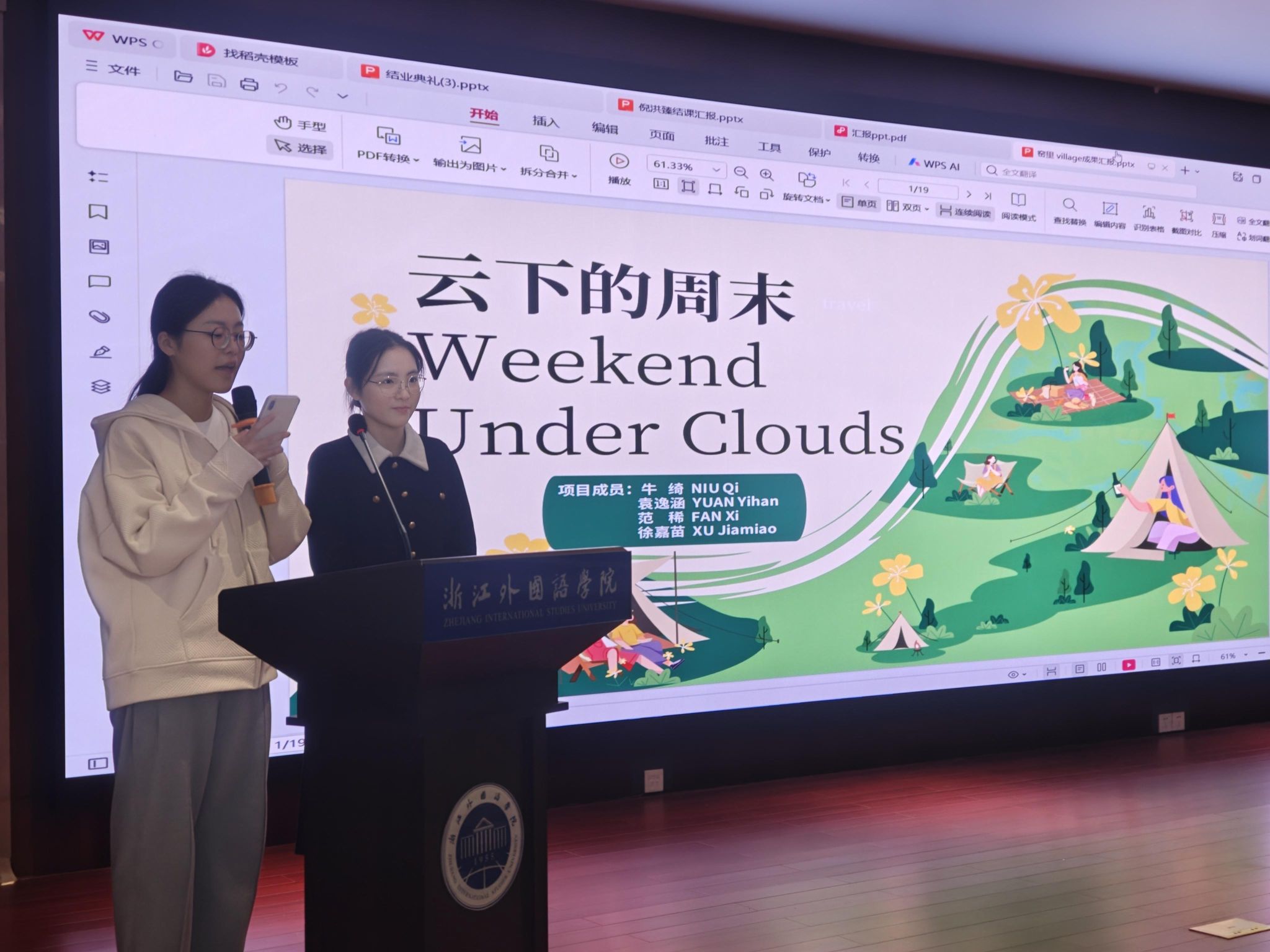 在北大实践成果分享环节中,三组学员代表带来了他们与北大学子共同参加北大暑期社会实践的丰硕收获。黄晨曦、赵文清同学前往北京探索了大运河文化带的空间叙事;许紫玲、徐嘉苗同学前往湖州探索文旅体验中的价值共创模式;吴尤佳、倪洪臻同学则分享了四川之行中以艺术介入激活乡村文旅的生动实践。这些鲜活的案例,是公司学子将理论融入实践、以行动赋能发展的有力证明。