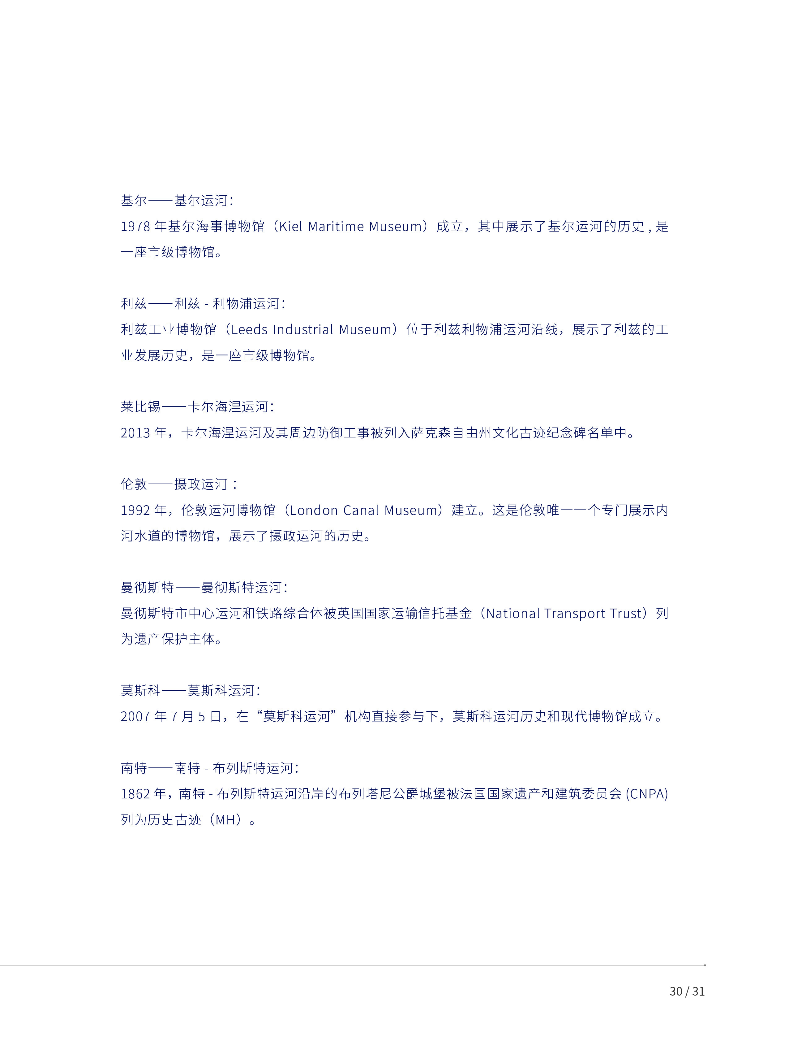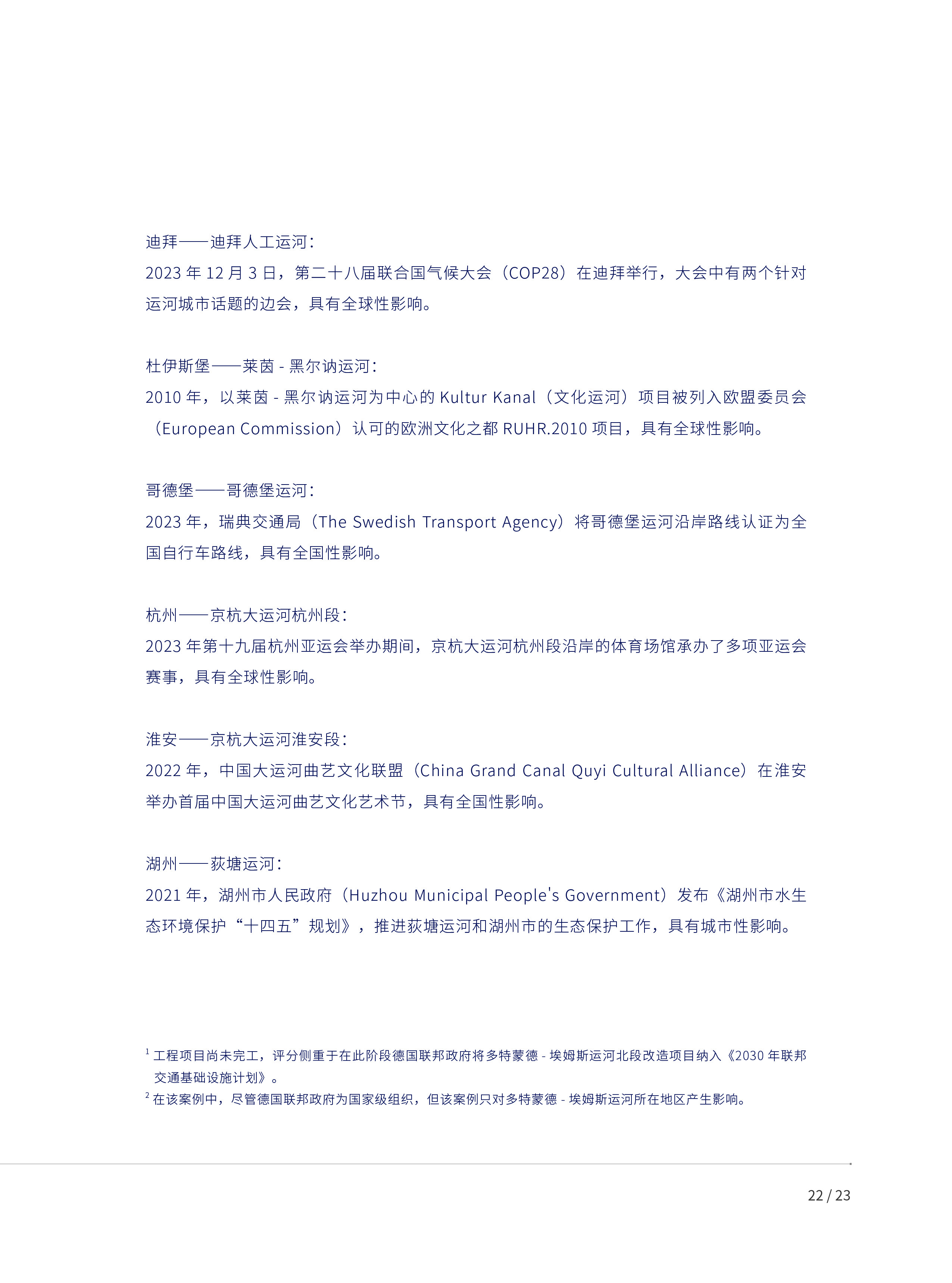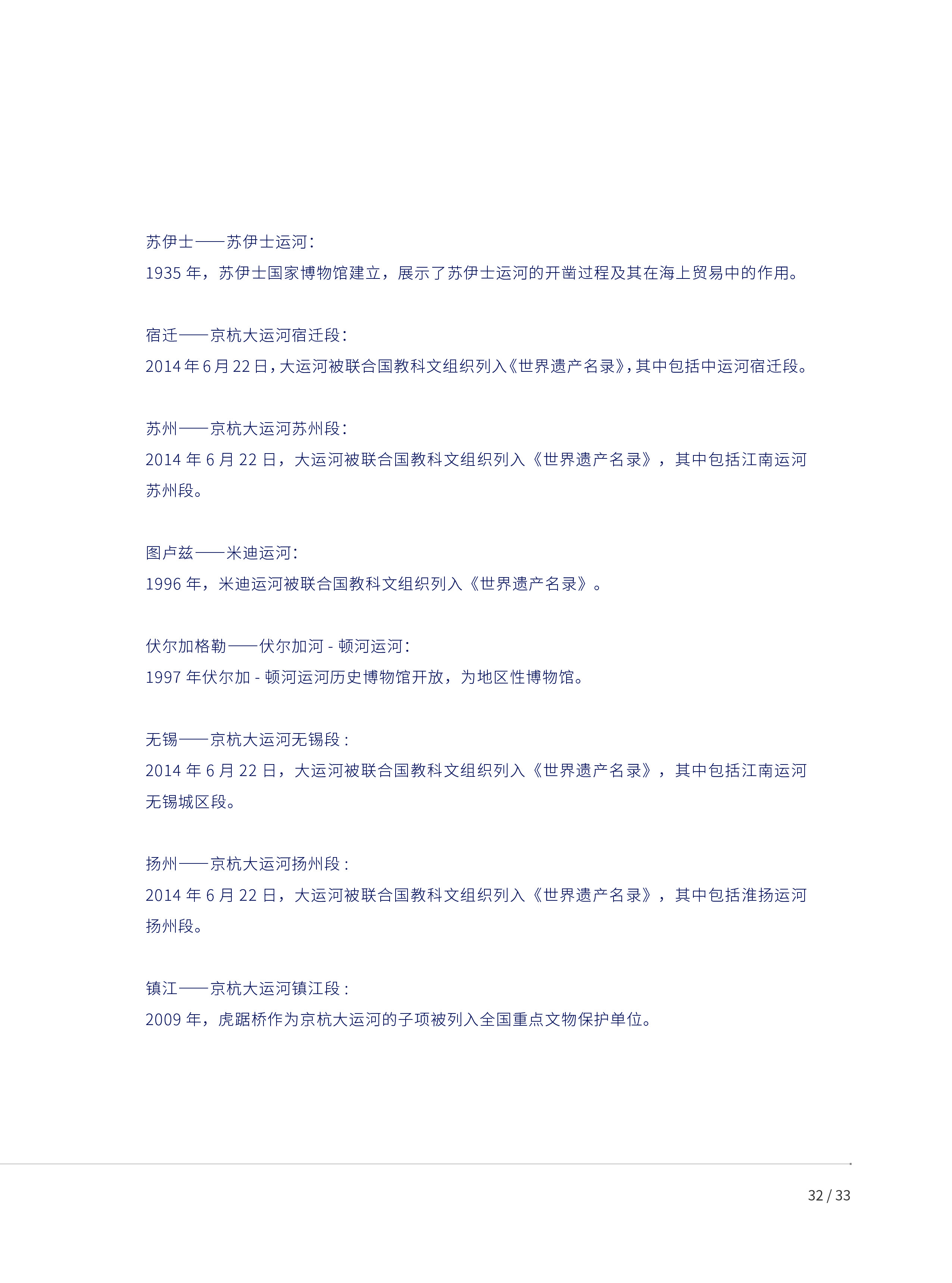本报告以“尊重各文明成果,以评价促进文明交流互鉴”为指引,基于运河城市重大历史事件、文旅资源、交通和环境等多元对象,构建包括文化旅游、地理区位和生态环境在内的多学科全球运河城市评估体系,并对42个亚欧运河城市展开评估。评估结果显示,淮安、嘉兴、无锡、扬州、杭州、绍兴、苏州等中国浙江和江苏沿线运河城市表现突出。这与它们兴盛至今的货运航行、文旅产业密切相关。在生态维度上,欧洲运河城市整体领先,呈现出“各美其美、美美与共”的全球多样性格局。