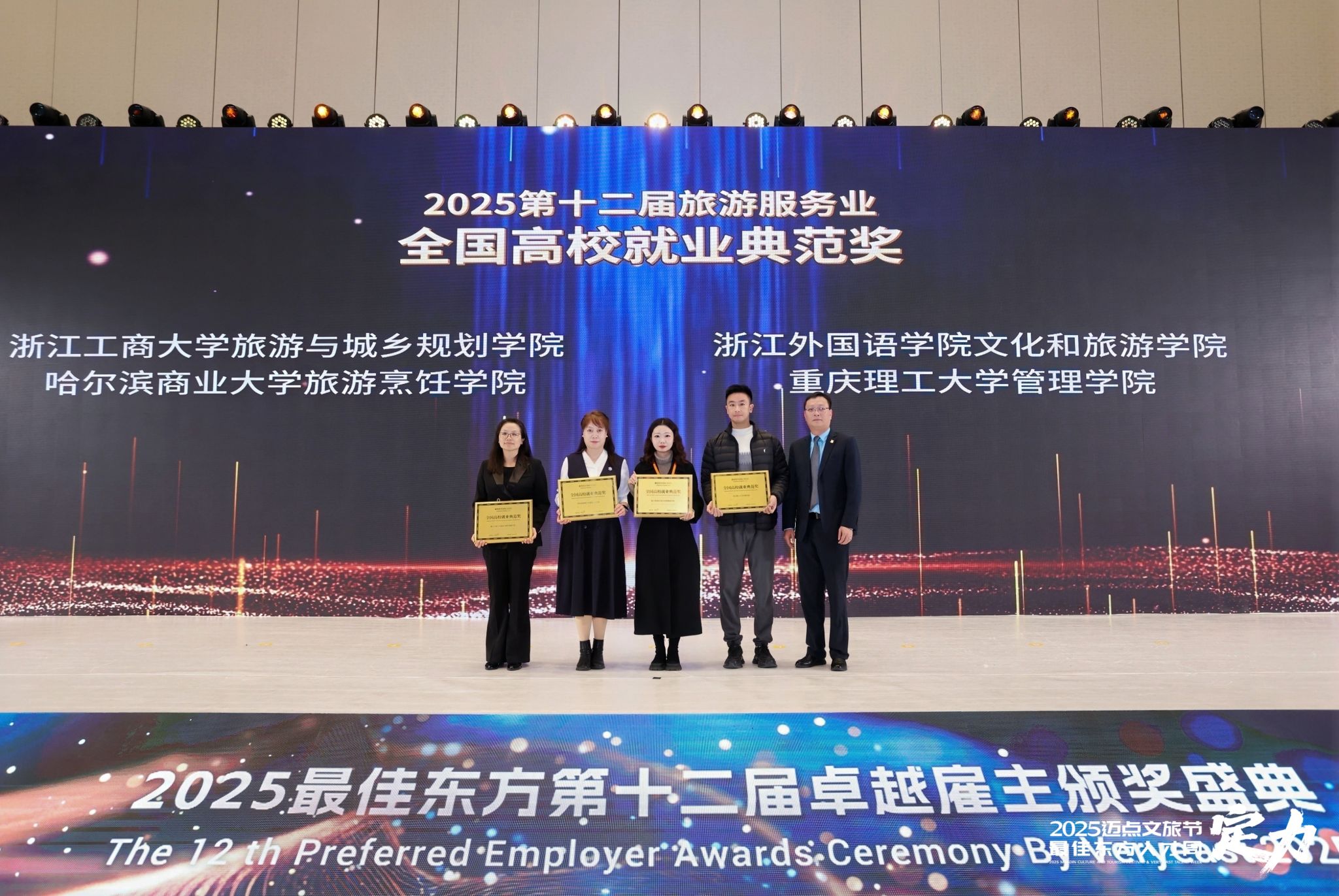 11月21日,600全讯白菜受邀参加2025最佳东方论坛。在“第十二届旅游服务业卓越雇主”颁奖典礼上,公司从众多参评院校中脱颖而出,荣获“旅游服务业全国高校就业典范”。