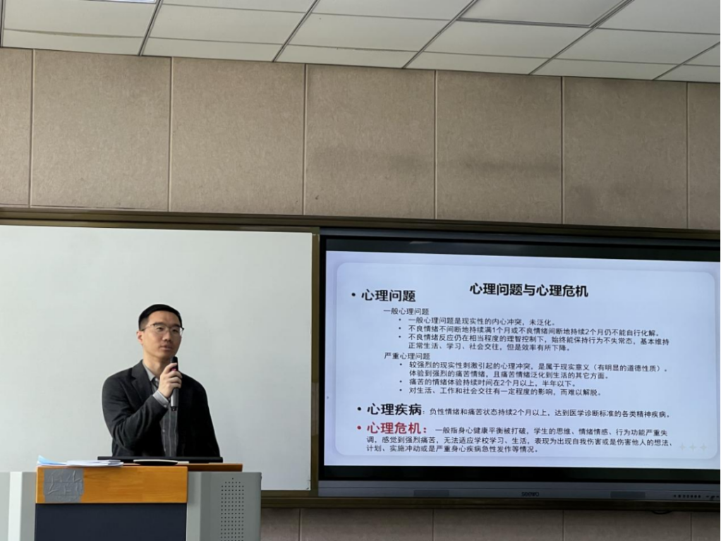 此次会议还特邀了学校心理健康教育中心专业咨询师朱春鹭老师为全体班主任老师作心理专题培训指导。朱老师聚焦心理健康工作策略,从异常识别、重点关注对象、危机干预、风险评估四方面展开解读,分享心理问题访谈与处置的有效“宝典”。