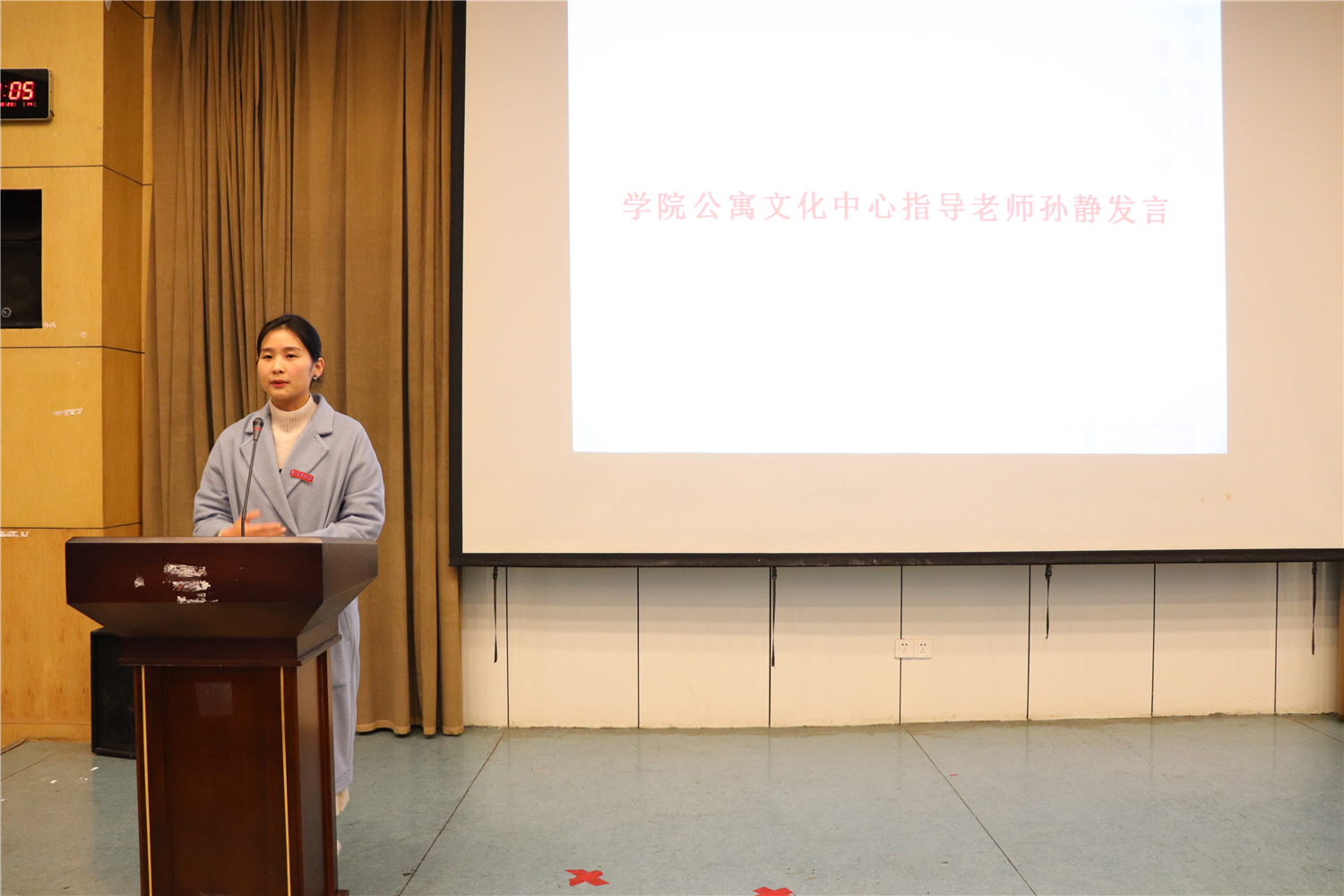 孙静老师首先对寝室长们的配合及付出表示感谢,同时也对寝室长们提出了三点要求:第一,寝室长应该有担当和责任感,营造一个舒适健康向上的寝室氛围。第二,应该具有安全意识,安全用电,不使用违规电器。第三,积极学习相关的心理知识,关注和排解室友们的问题。”