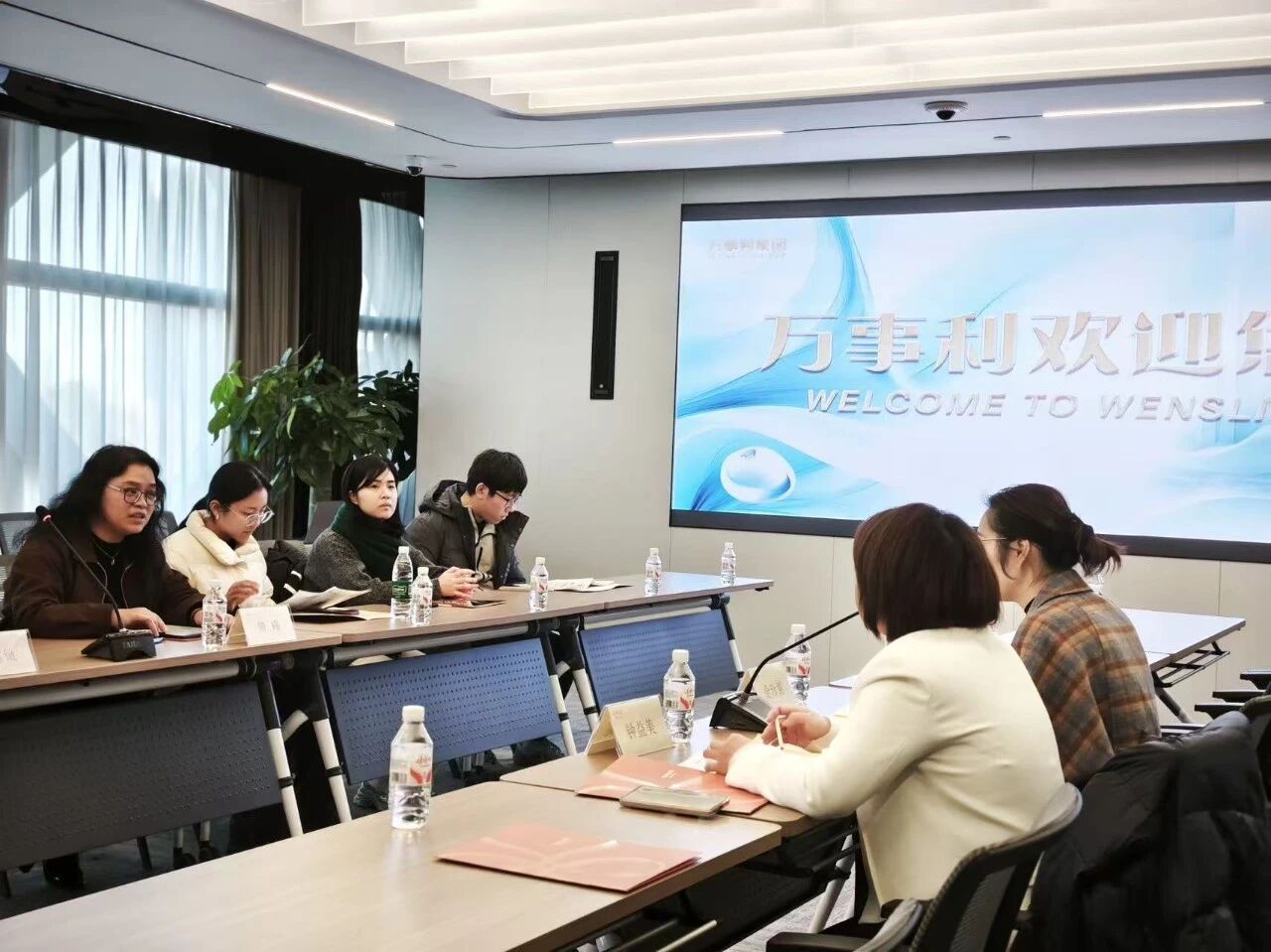 为深入贯彻党中央、国务院关于高校毕业生就业工作决策部署,落实“优企引才”定向访企拓岗促就业专项行动要求,进一步拓宽就业渠道、深化校企协同育人,近日,公司党委副书记、纪委书记黄瑾,辅导员孟雪镜带领文旅学子赴杭州万事利丝绸文化股份有限公司开展定向参观交流与岗位开拓活动。杭州万事利丝绸文化股份有限公司董事长助理兼管理中心总监沈小华、董事长办公室主任金珍果、管理中心总监助理兼博士后工作站副站长钟益美接待公司师生一行。